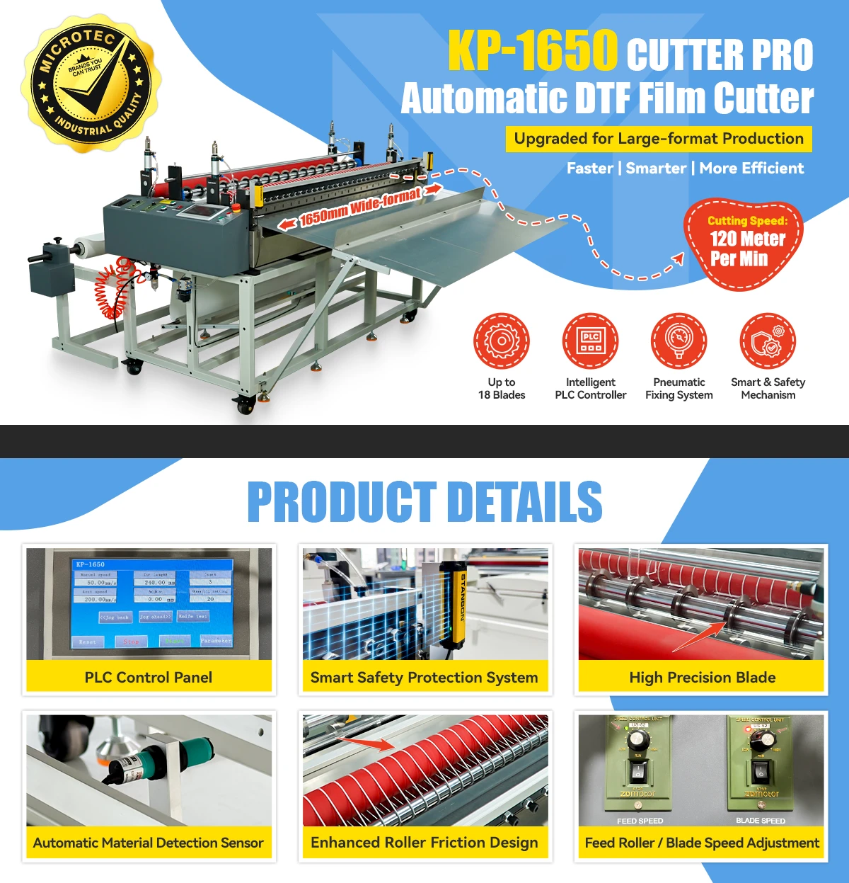 Presentamos con orgullo el Máquina cortadora de película DTF KP-1650, un gran avance en la producción DTF de gran formato. Con una impresionante ancho máximo de corte de 1650 mm, la KP-1650 lleva la precisión y la eficiencia al siguiente nivel: perfecta para la impresión DTF de gran volumen y el procesamiento de películas por transferencia térmica.