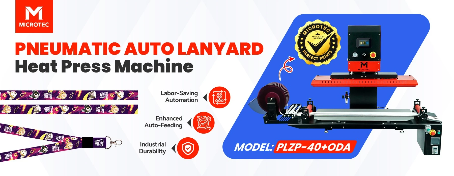 In today’s gift and promotional industry, personalization defines value. Whether it’s a custom lanyard for corporate events, a branded ribbon for luxury packaging, or a unique accessory for giveaways — every detail matters. That’s why more manufacturers are choosing the Microtec PLZP-40 ODA Dual-Side Pneumatic Heat Press to achieve flawless double-sided transfers with unmatched efficiency.
