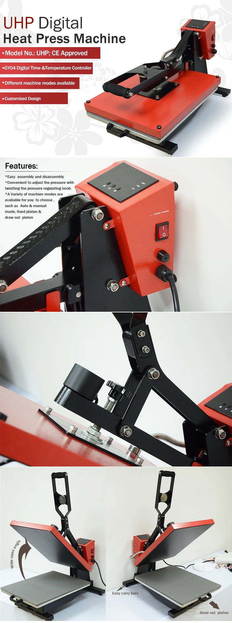 Platen Sizes: 15"x15" (38x38 cm), 16"x20" (40x50 cm), 16"x24" (40x60 cm).