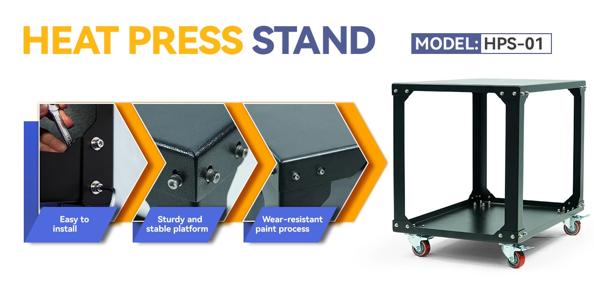 This stand is engineered for stability, mobility, and efficiency, making it the perfect companion for your heat press machine.